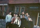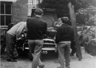 Major surgery being performed in Wavecrest back yard  on Wireless College Passion Wagon No. 1 after some pillock let it run out of oil. Info from David Wilson: Back Row L to R: Ian Jones, Jimmy Feore, Dave Wilson. Front Row  L to R: David from Leigh on Sea?, Jock from East London, Chris Thomas, Pete Binns Wavecrest-1962-web  BACK ROW  -    Brien Loh, Dave Wilson  FRONT ROW  –  Ian Jones, Shah (Gurmail Gardezi),  Johnny Mehay, Dick Wilgress. Not too sure about the other two lads, but they sure look familiar. warcar Bodger's car repair 2